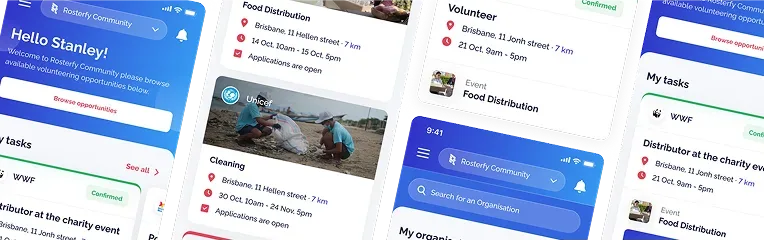 Used by 5 million+ volunteers and staff worldwide, Rosterfy enables organisations with volunteers at their heart, to scale with confidence and amplify their impact.