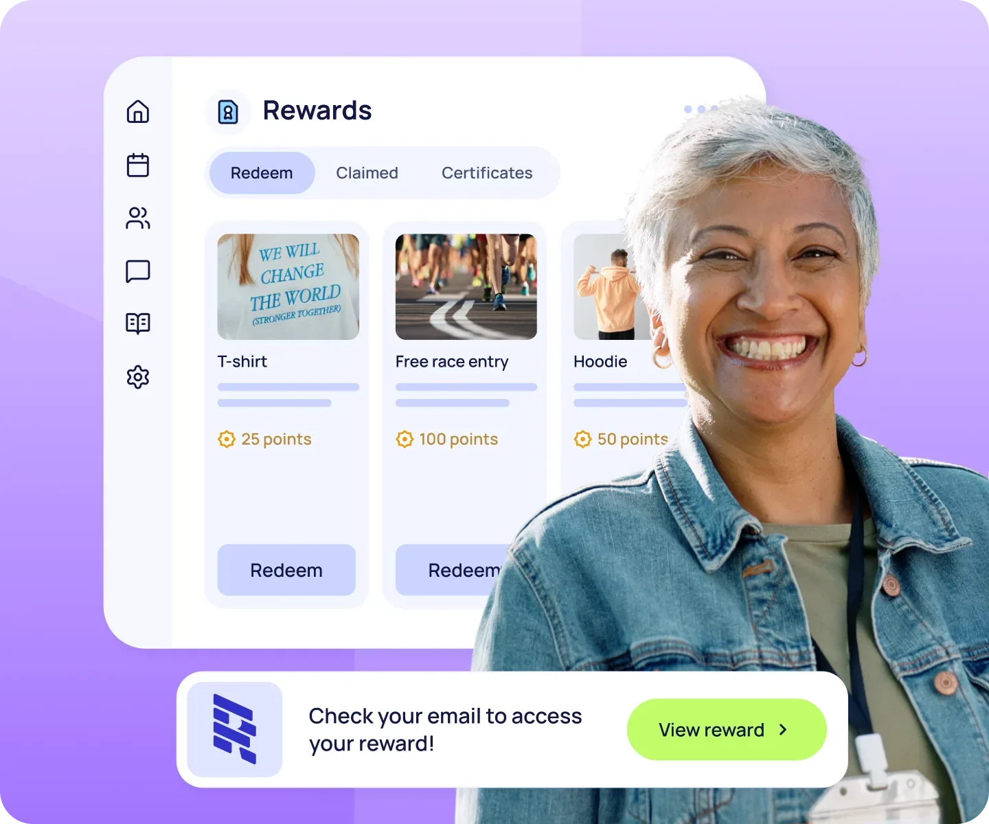 Make volunteer recognition effortless. Whether it’s e-badges, certificates, merchandise, ticket discounts or gift vouchers, Rosterfy helps you create a rewarding experience that keeps volunteers engaged.