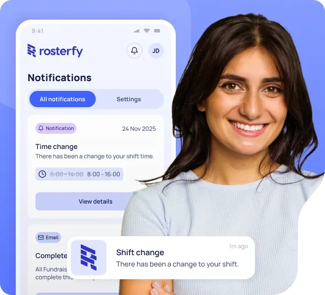 From onboarding and scheduling to compliance and reporting, Rosterfy automates repetitive tasks, saving your team valuable time while delivering a seamless, personalised experience for every volunteer.