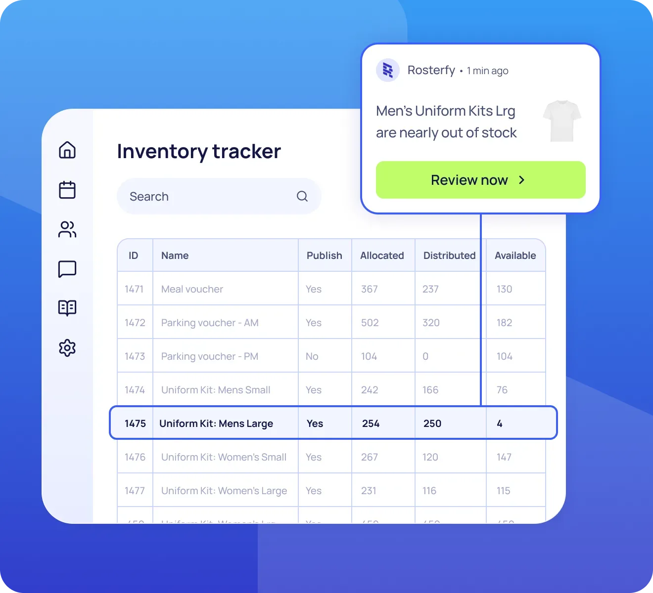Beyond rewards, Rosterfy’s inventory management can be used for uniform management and distribution, meal and parking vouchers and the distribution of radios onsite!