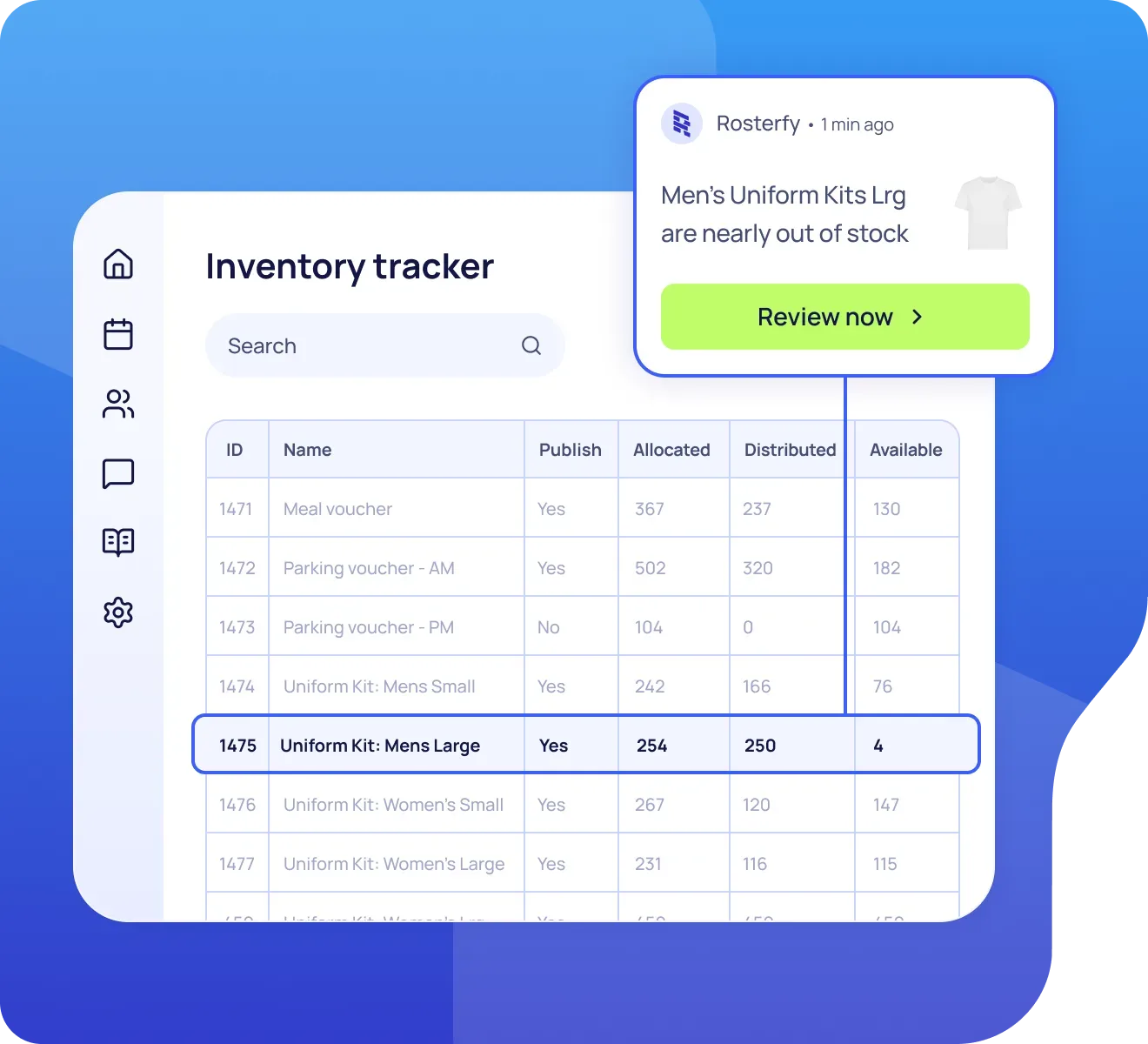 Beyond rewards, Rosterfy’s inventory management can be used for uniform management and distribution, meal and parking vouchers and the distribution of radios onsite!