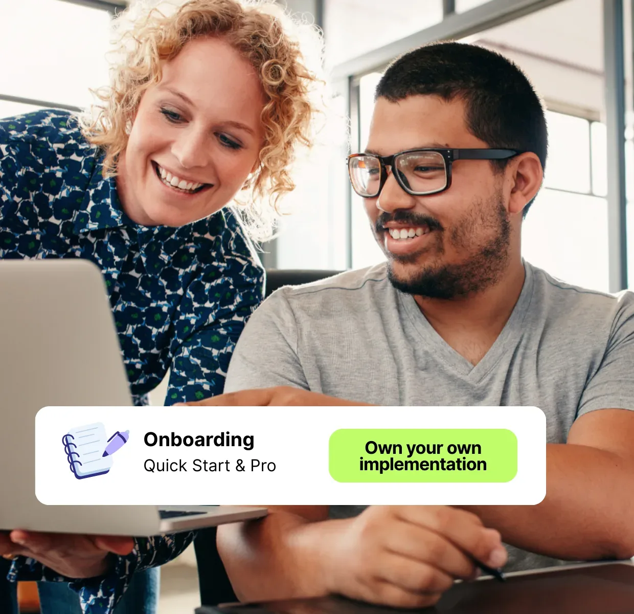Designed for confident teams who need a fast, focused head start. Quick Start Onboarding options are a structured, collaborative onboarding experience built around core value delivery, not complexity.
